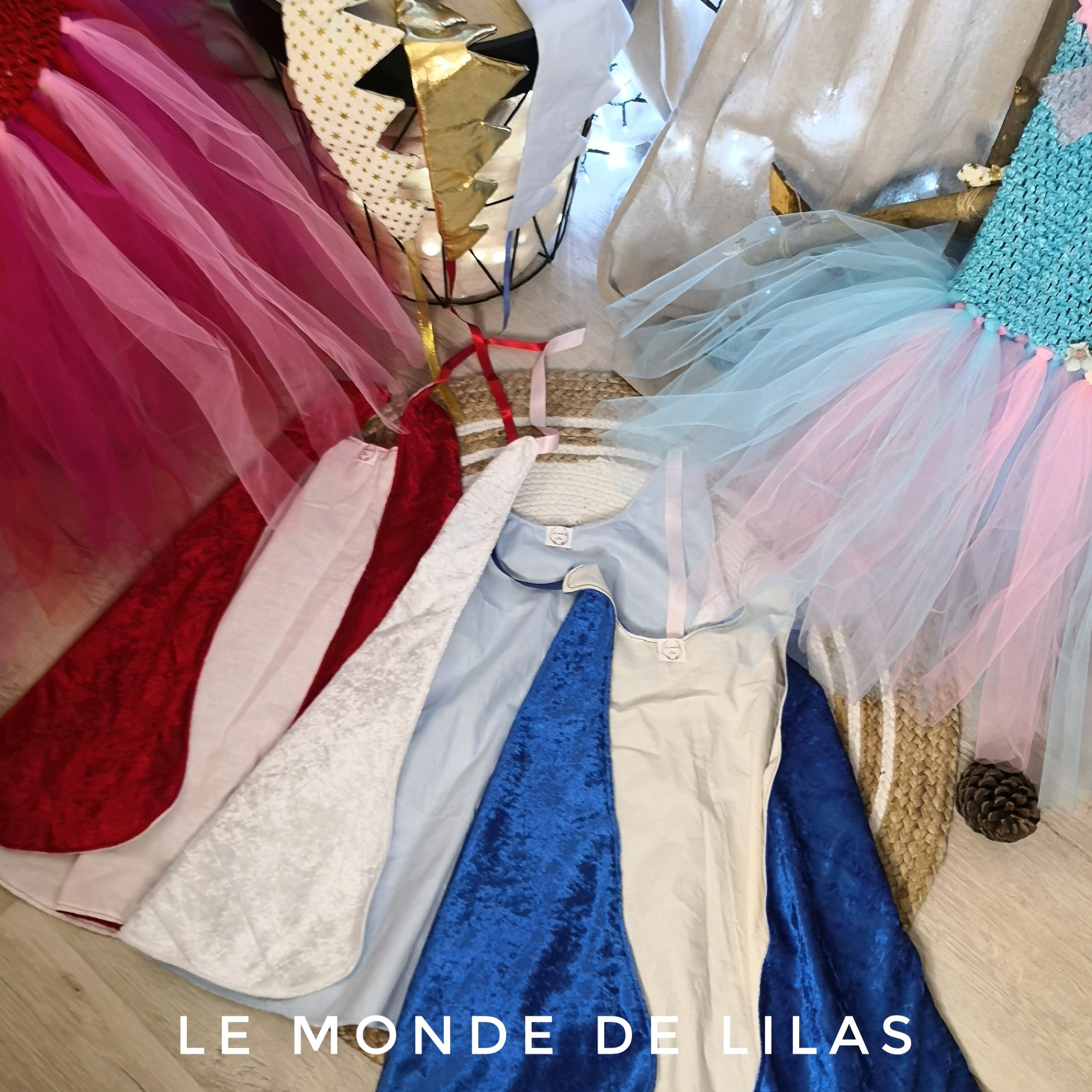 Capes tailles uniques. Bicolores avec cordon en satin pour fermeture.
